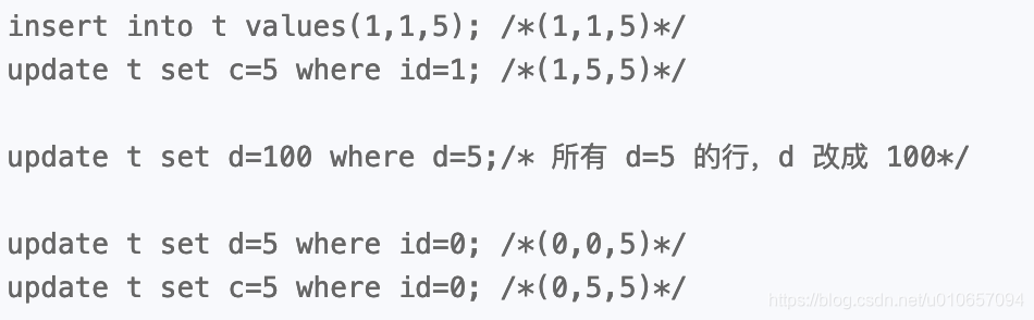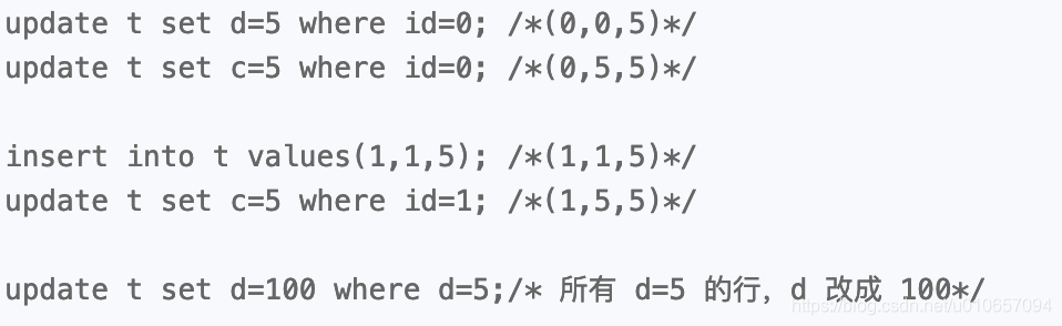 - redo log是物理日志,记录的是“在某个数据页上做了什么修改”;binlog是逻辑日志,记录的是这个语句的原始逻辑,比如“给ID=2这一行的c字段加1”。binlog两种模式:statement格式记录SQL语句,row格式记录行的内容,两条(更新前和更新后)。