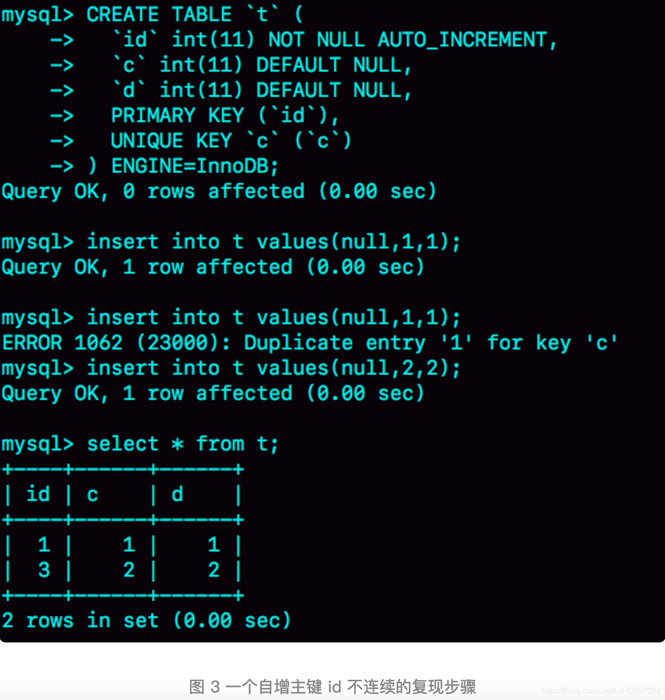 表定义的自增值达到上限后的逻辑是:再申请下一个 id 时,得到的值保持不变。